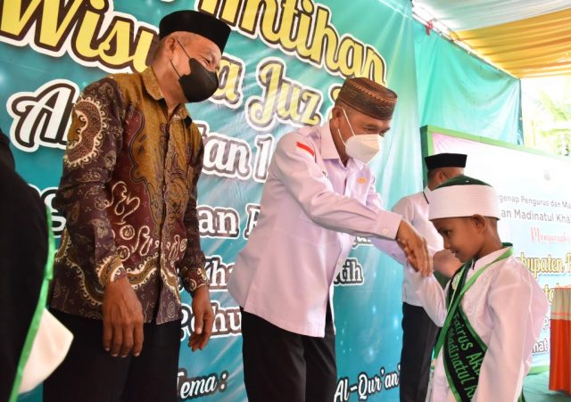 “Keberadaan rumah qur’an madinatul khairat diharapkan menjadi salah satu solusi dari tantangan dan persoalan rumit yang sedang kita hadapi, diiringi doa semoga dari tempat ini akan banyak meluluskan para hafiz dan hafizah terbaik”,pungkas bupati.