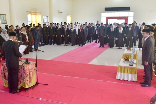 “Selamat kepada bapak ibu yang baru saja diambil sumpah dan jabatan. Insya Allah kinerja seluruh pejabat yang dilantik hari ini akan kami perhatikan. Mari kita akhiri dinamika ini dengan semangat baru. Ingat, jika tidak maksimal dan tidak efektif, bisa saja kami kembalikan ke posisi sebelumnya,”tegasnya.