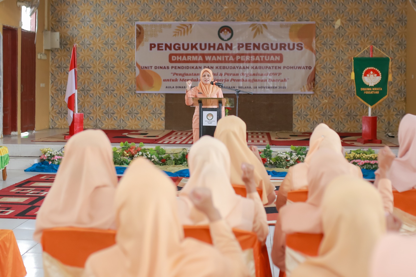 Hal ituqe dikatakan Ketua Dharma Wanita Persatuan (DWP) Kabupaten Pohuwato, Ny. Suriyati Datau R. Abdjul saat mengukuhkan Ny. Arnice Arman Mohamad sebagai Ketua DWP Unit Dinas Dikbud Kabupaten Pohuwato bersama jajaran DWP Unit Dinas Dikbud Pohuwato, Kamis (04/12/2025).