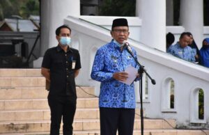BOALEMO DAMAI (barometernewsgo.com)-Plt Bupati Boalemo Anas Jusuf memimpin apel Korpri di lingkungan Pemerintah Kabupaten Boalemo di alun-alun Tilamuta, Senin (18/1).