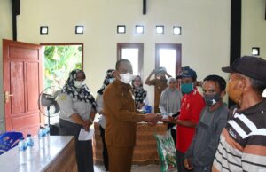 Gorut Ceria : Sekda Gorut Ridwan Yasin kembali menyerahkan bibit jagung R7 kepada Kelompok Tani Desa Molingkapoto Selatan, Kecamatan Kwandang, Senin...