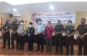 GORUT CERIA (barometernewsgo.com)-Bupati Gorut Indra Yasin mengukuhkan Tim Satgas Saber Pungli untuk memberantas pelaku pungli di lingkungan Pemda Gorut.