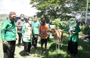 GORONTALO GEMILANG (barometernewsgo.com)-Bupati Gorontalo Nelson Pomalingo memberikan bantuan ternak sapi kepada masyarakat di Desa Mootudo, Selasa (9/6).