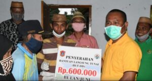 Sekda Gorut Cairkan BLT di Desa Hulawa Sumalata Timur