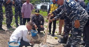 Bupati Saipul Mbuinga Melakukan Peletakkan Batu Pertama Pembangunan Pos TNI-AL di Pohuwato Timur