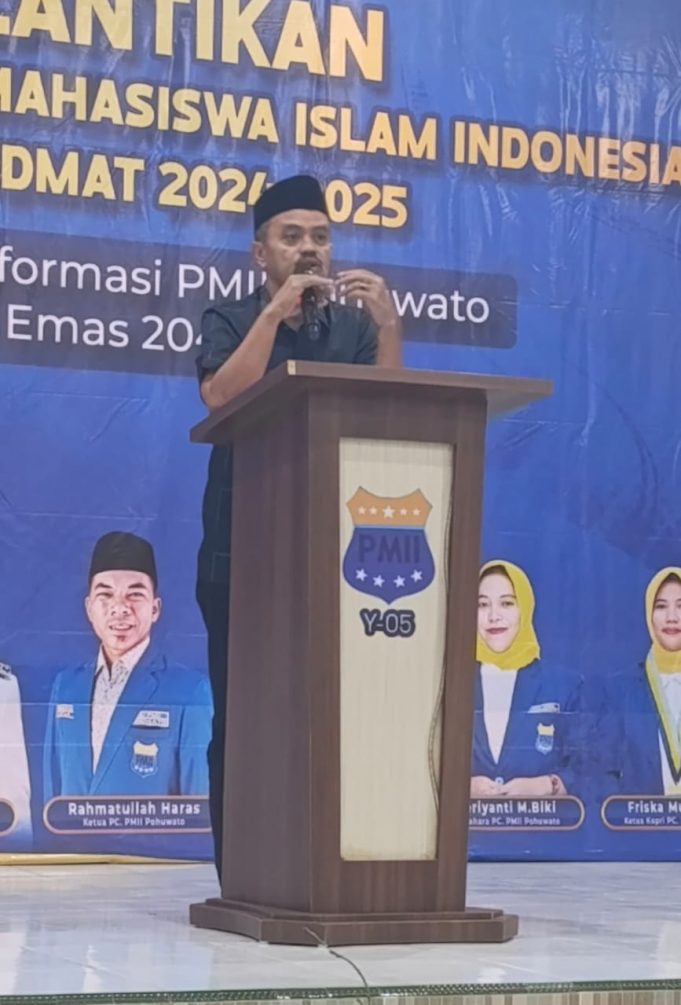POHUWATO (barometernewsgo.com)-Sekretaris Daerah Pohuwato, Iskandar Datau, menghadiri resepsi pelantikan Pengurus Cabang Pergerakan Mahasiswa Islam Indonesia (PMII) Kabupaten Pohuwato masa khidmat 2024-2025 oleh Ketua Bidang ESDM PB PMII, Rahmat Ghifarry Bestamin, di aula Kemenag Pohuwato, Sabtu, (08/06/2024).