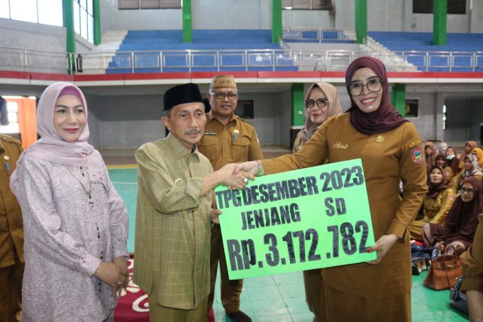 KABGOR (barometernewsgo.com)-Bupati Gorontalo Nelson Pomalingo menyerahkan tunjangan Profesi Guru (TPG) untuk bulan Desember 2023 kepada ribuan guru daerah, Senin (26/02/2024), di GOR David - Tony, Sport Center Limboto.