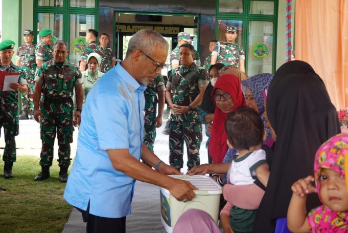 POHUWATO (barometernewsgo.com)-PT.Pani Gold Project (PGP) bekerjasama dengan Komando Daerah Militer (Kodam) XIII/Merdeka menyerahkan bantuan sosial (bansos), berupa paket makanan untuk meningkatkan gizi anak dan mencegah stunting, Rabu, (7/2).