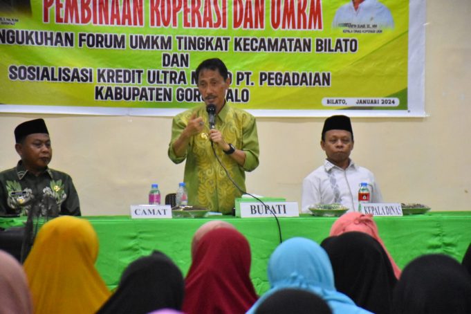 KABGOR (barometernewsgo.com)- Bupati Gorontalo, Prof. Nelson Pomalingo, secara resmi mengukuhkan Forum Usaha Mikro Kecil dan Menengah (UMKM) Kecamatan Bilato pada Kamis (18/1/2024) di Kantor Desa Bumela.