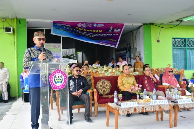 POHUWATO (barometernewsgo.com)-Bupati Pohuwato, Saipul A. Mbuinga secara resmi melepas 242 Mahasiswa Kuliah Kerja Nyata (KKN) Tematik Membangun Desa Universitas Pohuwato (Unipo) angkatan ke-III tahun 2024 di halaman Unipo, Senin, (22/01/2024).