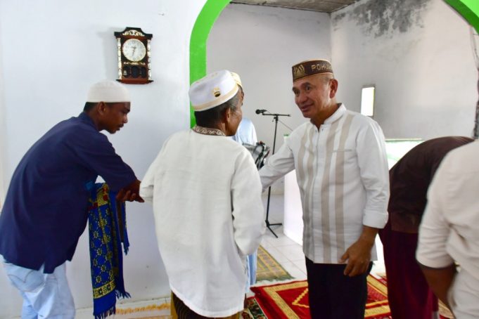 POHUWATO (barometernewsgo.com)-Usai meninjau jalan dan pembinaan terhadap kelompok usaha garam yang ada di Desa Siduwonge, Kecamatan Randangan, Bupati Pohuwato, Saipul A. Mbuinga menyempatkan waktu untuk Shalat jum’at berjemaah di Masjid Al-Markas, Dusun Simanagi, Desa Siduwonge, Jum’at, (29/12/2023).
