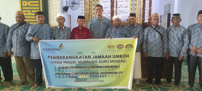 POHUWATO (barometernewsgo.com)-Pani Gold Project memberangkatkan sejumlah tokoh agama di Kabupaten Pohuwato, Provinsi Gorontalo untuk menjalankan ibadah umroh ke tanah suci Mekah sebagai bentuk komitmen perusahaan menjadi mitra dan tetangga yang baik di Bumi Panua.