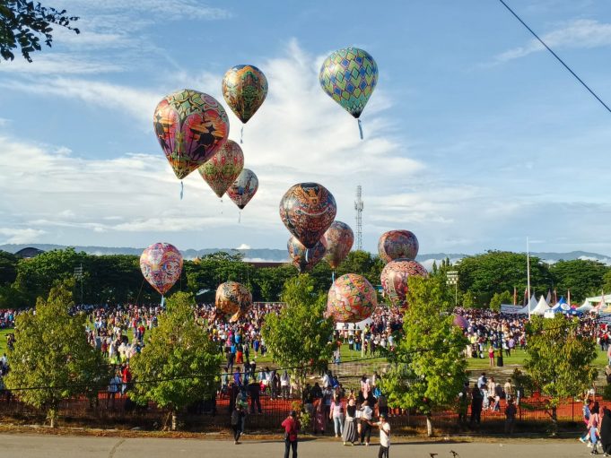 KABGOR (barometernewsgo.com)- Festival Balon Udara yang digagas Anggota DPR-RI Rachmat Gobel kerjasama Pemerintah Kabupaten Gorontalo dan berlangsung di Sport Center David-Tonny Limboto berlangsung meriah, Sabtu (7/9).