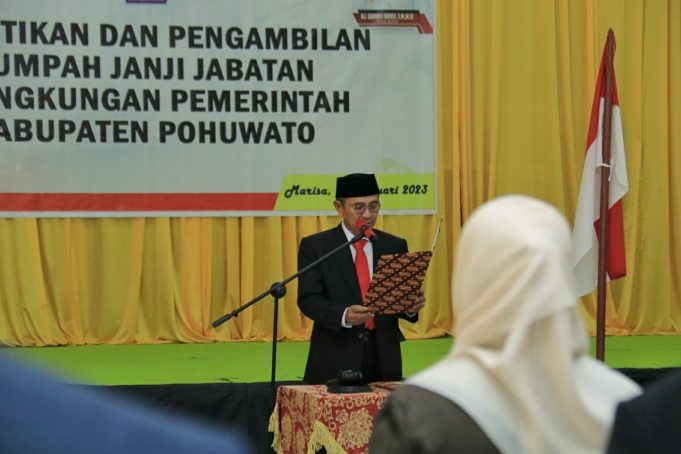POHUWATO (barometernewsgo.com)-Sebanyak 177 Pejabat Administrasi dan Fungsional terdiri dari 150 orang dalam jabatan struktural dan 27 orang dalam jabatan fungsional dilantik dan diambil sumpah/janji oleh Bupati Pohuwato, Saipul A. Mbuinga, Jum'at (06/01).