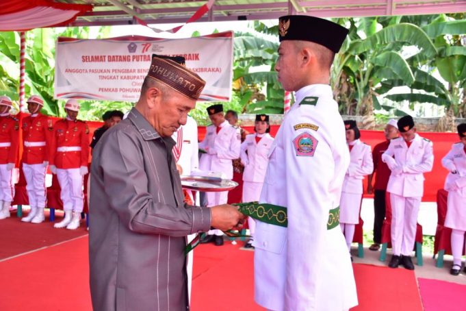 POHUWATO (barometernewsgo.com)-Bupati Pohuwato, Saipul A. Mbuinga mengukuhkan anggota pasukan pengibar bendera pusaka (Paskibraka) kabupaten pohuwato di aula pertemuan hotel isabel kecamatan popayato timur, Selasa, (16/08).