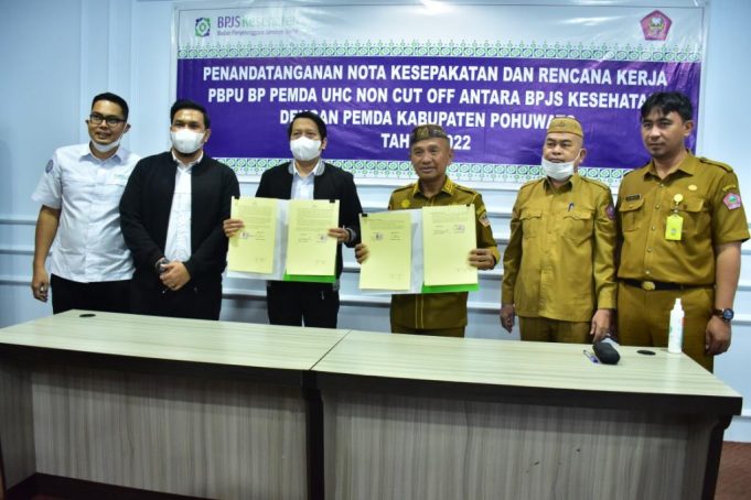 POHUWATO (barometernewsgo.com)-Penandatanganan nota kesepakatan dan rencana kerja PBPU BP Pemda UHC non cut off antara BPJS Kesehatan dengan Pemda Kabupaten Pohuwato di kantor BPJS Kesehatan Cabang Gorontalo dilakukan Bupati Pohuwato, Saipul A. Mbuinga dengan Kepala Badan Penyelenggara...