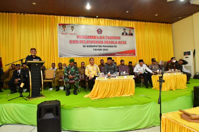 POHUWATO (barometernewsgo.com)-Sebanyak 62 kades terpilih hasil pemilihan kepala desa (Pilkades) serentak pada 10 Agustus 2022 resmi menjadi kades definitif setelah dilakukan pengambilan sumpah dan pelantikan oleh Bupati Pohuwato, Saipul A. Mbuinga di gedung panua kantor Bupati, Senin,...