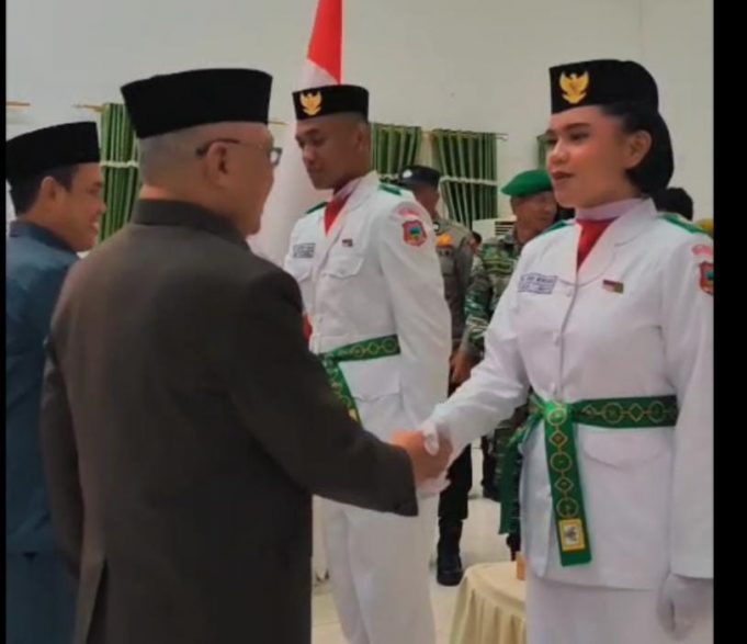KABGOR (barometernewsgo.com)-Bupati Gorontalo Sofyan Puhi Mengukuhkan 26 Anggota Pasukan Pengibar Bendera Pusaka (Paskibraka) tingkat Kabupaten Gorontalo tahun 2025, Jumat (15/8).