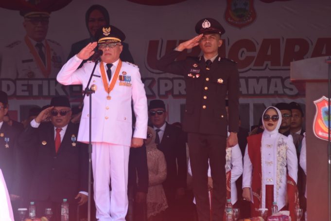 POHUWATO (barometernewsgo.com)-Bupati Pohuwato, Saipul A. Mbuinga, bertindak selaku Inspektur pada upacara Detik-detik Proklamasi memperingati Hari Ulang Tahun (HUT) ke-80 Kemerdekaan Republik Indonesia tahun 2025 tingkat Kabupaten Pohuwato, di halaman Kantor Bupati Pohuwato, Ahad , (17/08/2025).