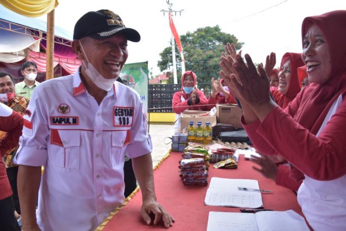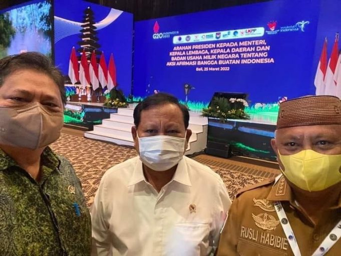 POHUWATO (barometernewsgo.com)-Kegiatan Aksi Afirmasi Bangga Buatan Indonesia yang dihadiri Presiden Jokowi di Grand Hyat Nusa Dua Bali, Jumat (25/3), menyisakan cerita tersendiri bagi Gubernur Gorontalo Rusli Habibie.