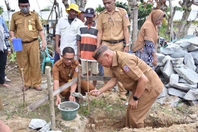 POHUWATO (barometernewsgo.com)-Bupati Pohuwato, Saipul A. Mbuinga melakukan peletakan batu pertama pembangunan rumah swadaya prasejahtera secara mengelompok di Desa Taluduyunu dan Desa Buntulia Utara Kecamatan Buntulia, Selasa, (8/2/2022). Hadir pada peletakan tersebut Sekretaris Dinas Perkim, Fadli Sanad dan...