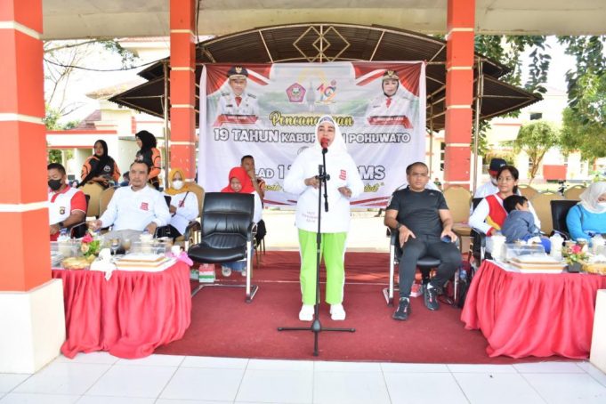 POHUWATO (barometernewsgo.com)-Wakil Bupati Pohuwato Suharsi Igirisa melakukan pencanangan HUT ke-19 Kabupaten Pohuwato dan Milad Pemerintahan Saipul Mbuinga-Suharsi (SMS) ke-1 yang dipusatkan di kompleks Perkantoran Blok Plan Marisa.