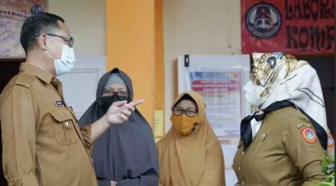 GORUT CERIA (barometernewsgo.com)- Wakil Bupati Gorontalo Utara Thariq Modanggu, Rabu (9/2) melakukan pengecekan pemaksimalan vaksinasi dan protokol kesehatan (prokes) di Sekolah Menengah Pertama (SMP) Negeri 1 Kwandang.