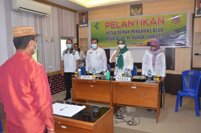 LIMBOTO (barometernewsgo.com)- Sekretaris Daerah Kabupaten Gorontalo Ir. Hadijah Tayeb melantik dan mengambil sumpah Ketua Dewan Pengawas Badan Layanan Umum Daerah (BLUD) Rumah Sakit Umum Daerah (RSUD) dr. MM Dunda Limboto Kabupaten Gorontalo di...