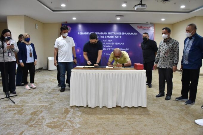 POHUWATO (barometernewsgo.com)-Penandatanganan nota kesepahaman digital smart city antara PT Telekomunikasi Selular dengan Pemda Kabupaten Pohuwato berlangsung di gedung Telkomsel Baruga, Makasar, Jum’at, (5/11/2021). Penandatanganan tersebut dilakukan Bupati Pohuwato, Saipul A. Mbuinga dengan General Manager Network Service Assorance...