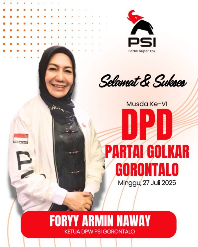 GORONTALO (barometernewsgo.com)-Ketua Dewan Pimpinan Wilayah partai Solidaritas Indonesia (DPW PSI) Provinsi Gorontalo, Prof. Fory Armin Naway, menyambut baik seraya menyampaikan selamat dan sukses kepada Idah Syahidah Rusli Habibie yang terpilih secara aklamasi sebagai Ketu Dewan Pimpinan Daerah...