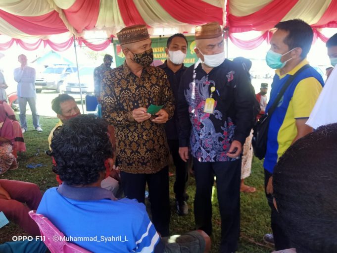 POHUWATO (barometernewsgo.com) - Bupati Pohuwato, Saipul Mbuinga bersama Wabup Suharsi Igirisa, yang didampingi Ketua TP-PKK Pohuwato, Kapolres Pohuwato, Kapolsek Paguat, Danramil Paguat, Kadis Kominfo, Asisten I, Kepala BPBD, Kepala Desa Maleo, dan Tim Vaksinasi Paguat, meninjau proses...