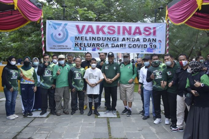 KABGOR (barometernewsgo.com) - Bupati Gorontalo Prof. Nelson Pomalingo melakukan peninjauan gebyar Vaksinasi covid-19 di Taman Telaga Park depan Kantor Camat Telaga Jum'at, (17/09/2021). Diketahui gebyar vaksin ini diselenggarakan PB IKA SMPPN56-SMA 3 Gorontalo kerjasama dengan Pemerintah Kabupaten...