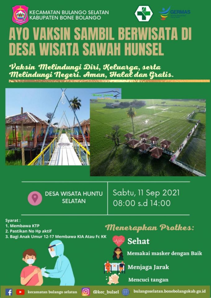 Lokasi Wisata Sawahan Huntu Selatan menjadi tempat vaksin yang akan dilaksanakan Sabtu (11/9/2021). Vaksinasi...