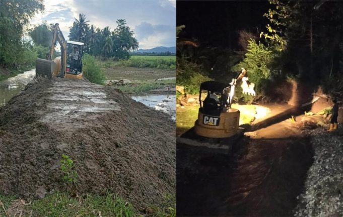 BONEBOL (barometernewsgo.com) - Dinas Pekerjaan Umum dan Penataan Ruang (PUPR) Kabupaten Bone Bolango sigap menangani jebolnya tanggul di Desa Bongopini, Kecamatan Tilongkabila, akibat curah hujan yang cukup tinggi, Minggu (5/9/2021).