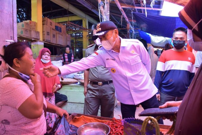 POHUWATO (barometernewsgo.com) - Penerapan PPKM Level 3 di Pasar Tradisional Marisa dipantau langsung Bupati Pohuwato, Saipul A. Mbuinga bersama Kapolres Pohuwato dan Dandim 1313 Pohuwato, Minggu, (15/8/2021). Nampak sejumlah masyarakat yang tidak menggunakan masker langsung di swab...