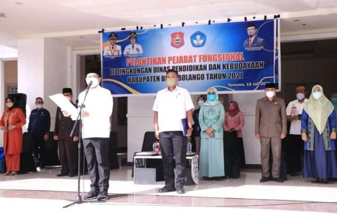 BONEBOL (barometernewsgo.com) - Sebanyak 251 pejabat fungsional di lingkungan Dinas Kesehatan (Diskes) dan Dinas Pendidikan dan Kebudayaan (Disdikbud) Kabupaten Bone Bolango resmi dilantik Bupati Bone Bolango, Hamim Pou, di halaman Kantor Bupati Bone Bolango, Kamis (15/7/2021).