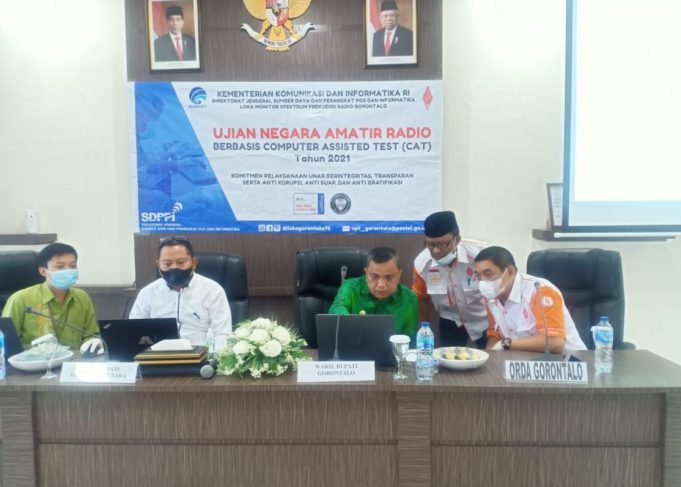 KABGOR (barometernewsgo.com) - Wakil Bupati Gorontalo, Hendra Hemeto, mengikuti Ujian Negara Amatir Radio, yang berlangsung di Kantor Loka Monitor Spektrum dan Frequensi Radio Provinsi Gorontalo, Selasa (13/7/2021),