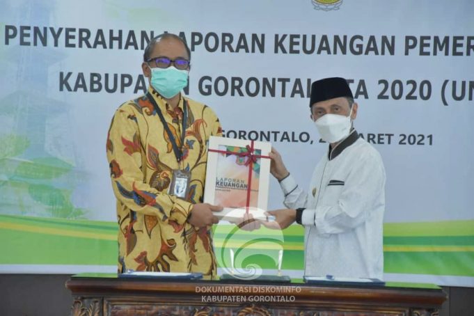 KABGOR (barometernewsgo.com)-Pemerintah Kabupaten Gorontalo menyerahkan Laporan Keuangan Pemerintah Daerah (LKPD) Unaudited Kabupaten Gorontalo Tahun 2020 ke Badan Pemeriksa Keuangan (BPK) RI Perwakilan Provinsi Gorontalo, Senin (22/3).
