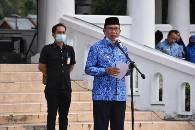 BOALEMO DAMAI (barometernewsgo.com)-Plt Bupati Boalemo Anas Jusuf memimpin apel Korpri di lingkungan Pemerintah Kabupaten Boalemo di alun-alun Tilamuta, Senin (18/1).