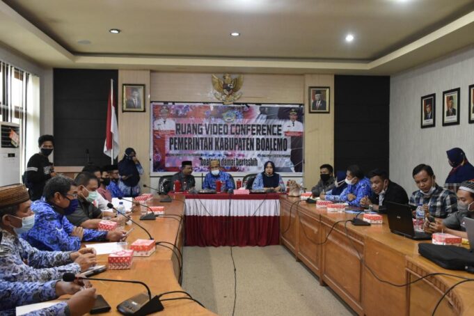 BOALEMO DAMAI (barometernewsgo.com)-Plt Bupati Boalemo Anas Jusuf menghadiri rapat program sembako Kementerian Sosial Tahun 2021 di ruang vicon Kantor Bupati, Senin (18/1).