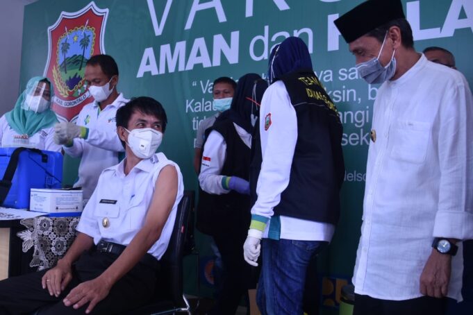 KABGOR (barometernewsgo.com)- Pemda Kabupaten Gorontalo akhirnya menggelar vaksinasi COVID-19 perdana di Rumah Dinas Bupati Gorontalo, Jumat (15/1).