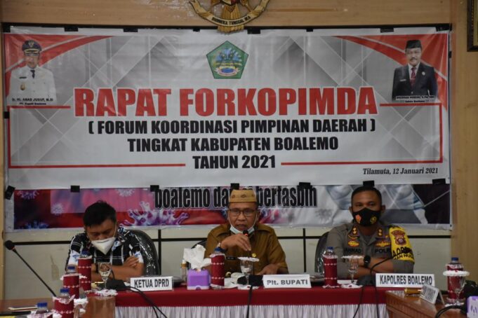 BOALEMO DAMAI (barometernewsgo.com)-Plt Bupati Boalemo Anas Jusuf memimpin rapat Forkopimda terkait persiapan pelaksanaan vaksin COVID-19 di Kabupaten Boalemo.