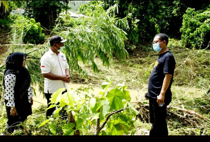 GORUT CERIA (barometernewsgo.com)-Wabup Gorut Thariq Modanggu turun langsung mengecek penyebab utama banjir di Kecamatan Monano.