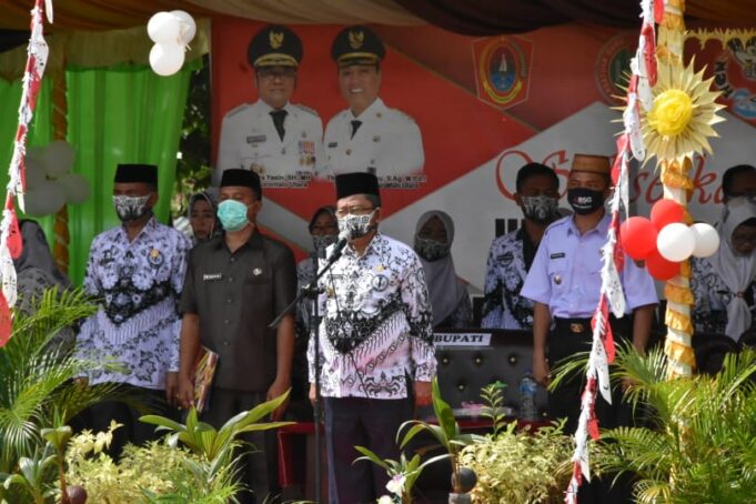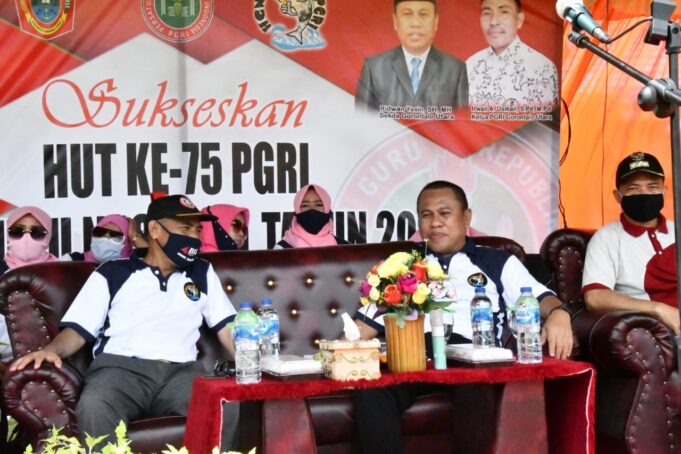 Gorut Ceria : Sekda Gorut Ridwan Yasin membuka secara resmi pencanangan HUT ke-75 PGRI tingkat kabupaten di Lapangan Terbuka Kecamatan Ponelo, Senin (23/11).