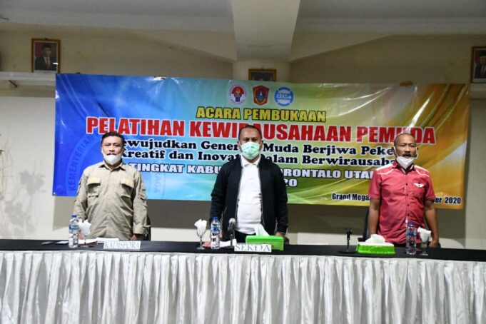GORUT CERIA (barometernewsgo.com)-Sekda Gorontalo Utara Ridwan Yasin membuka pelatihan kewirausahaan untuk pemuda yang digelar di hotel Mega Zanur Kota Gorontalo. Turut hadir dalam kegiatan tersebut pimpinan OPD terkait, serta pemuda yang ikut dalam pengembangan berwirausaha.