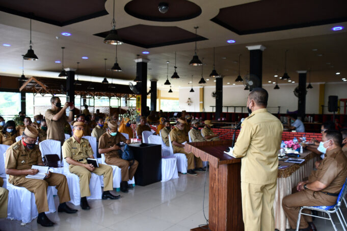 Gorut Ceria : Sekda Gorut Ridwan Yasin membuka acara sosialisasi smart government Sistem informasi Desa (SID) di Gedung Tik tok Desa Titidu Senin (16/11).