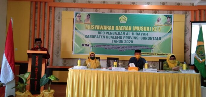 BOALEMO DAMAI (barometernewsgo.com)-Asisten III Setda Boalemo, Yakop Yusuf Musa mewakili Bupati Darwis Moridu membuka sekaligus memberikan sambutan pada kegiatan Musyawarah Daerah (Musda) ke-5 DPD Pengajian Al Hidayah Kabupaten Boalemo, di Grand Amalia Hotel, Sabtu (7/11).