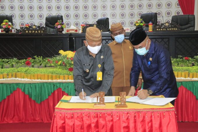 DPRD POHUWATO (barometernewsgo.com)-Pemerintah dan DPRD Kabupaten Pohuwato melakukan penandatanganan berita acara persetujuan bersama KUA-PPAS APBD Tahun Anggaran 2021 di Gedung DPRD Pohuwato, Senin (19/10).