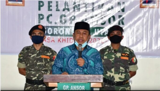 GORUT CERIA (barometernewsgo.com)-Sekda Gorontalo Utara yang juga Ketua Cabang Nahdlatul Ulama Gorut, Ridwan Yasin melantik pengurus Gerakan Pemuda Ansor Gorut.