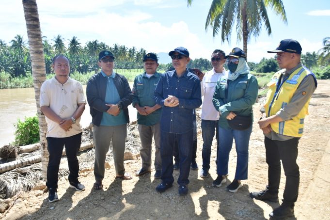 POHUWATO (barometernewsgo.com)-Bupati Pohuwato, Saipul A. Mbuinga, meninjau langsung proses penimbunan atau perbaikan tanggul yang jebol di Desa Suka Makmur, Kecamatan Patilanggio, Kamis (01/05/2025).